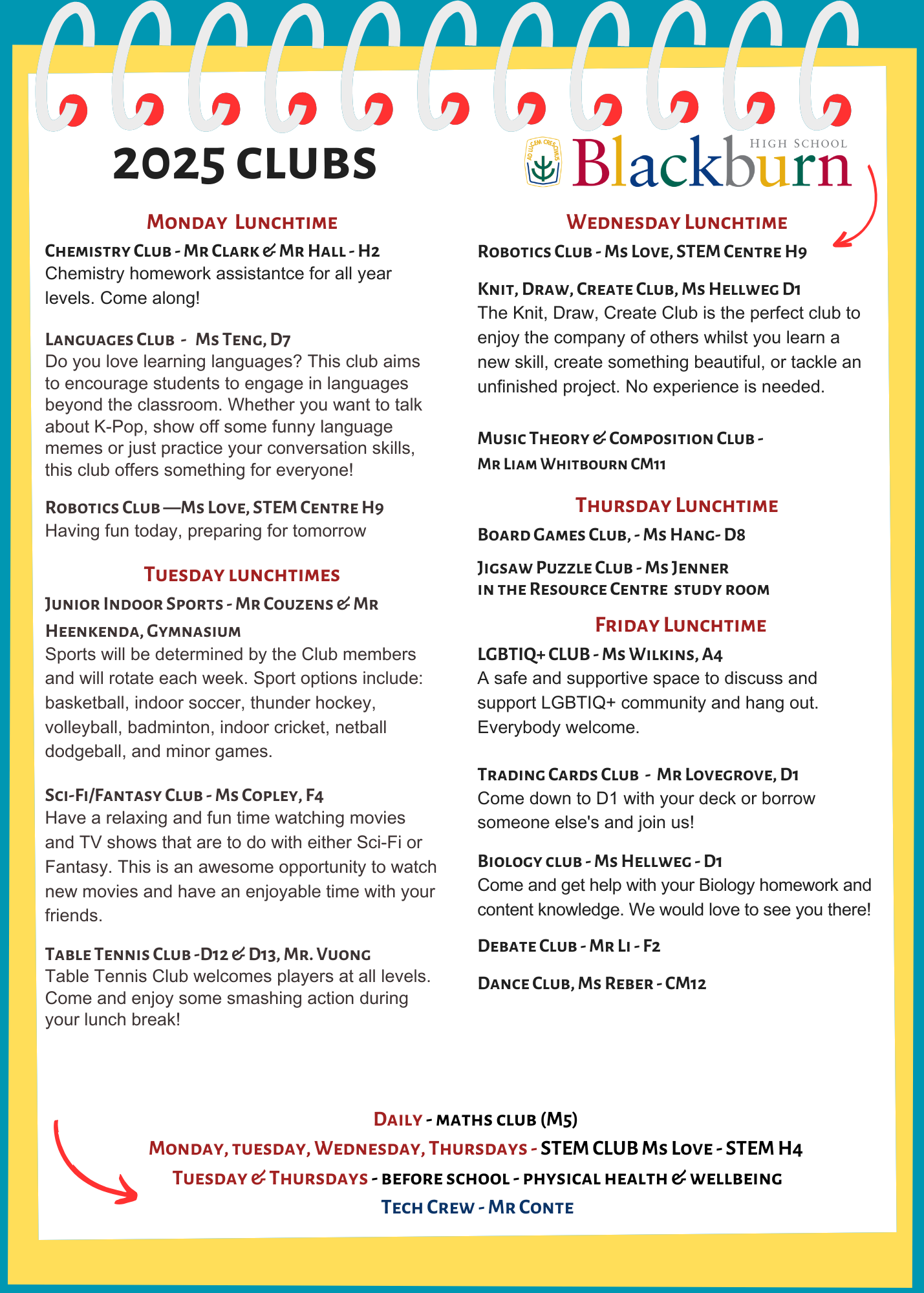 For students interested in joining a special interest club, there are so many choices at Blackburn High School.